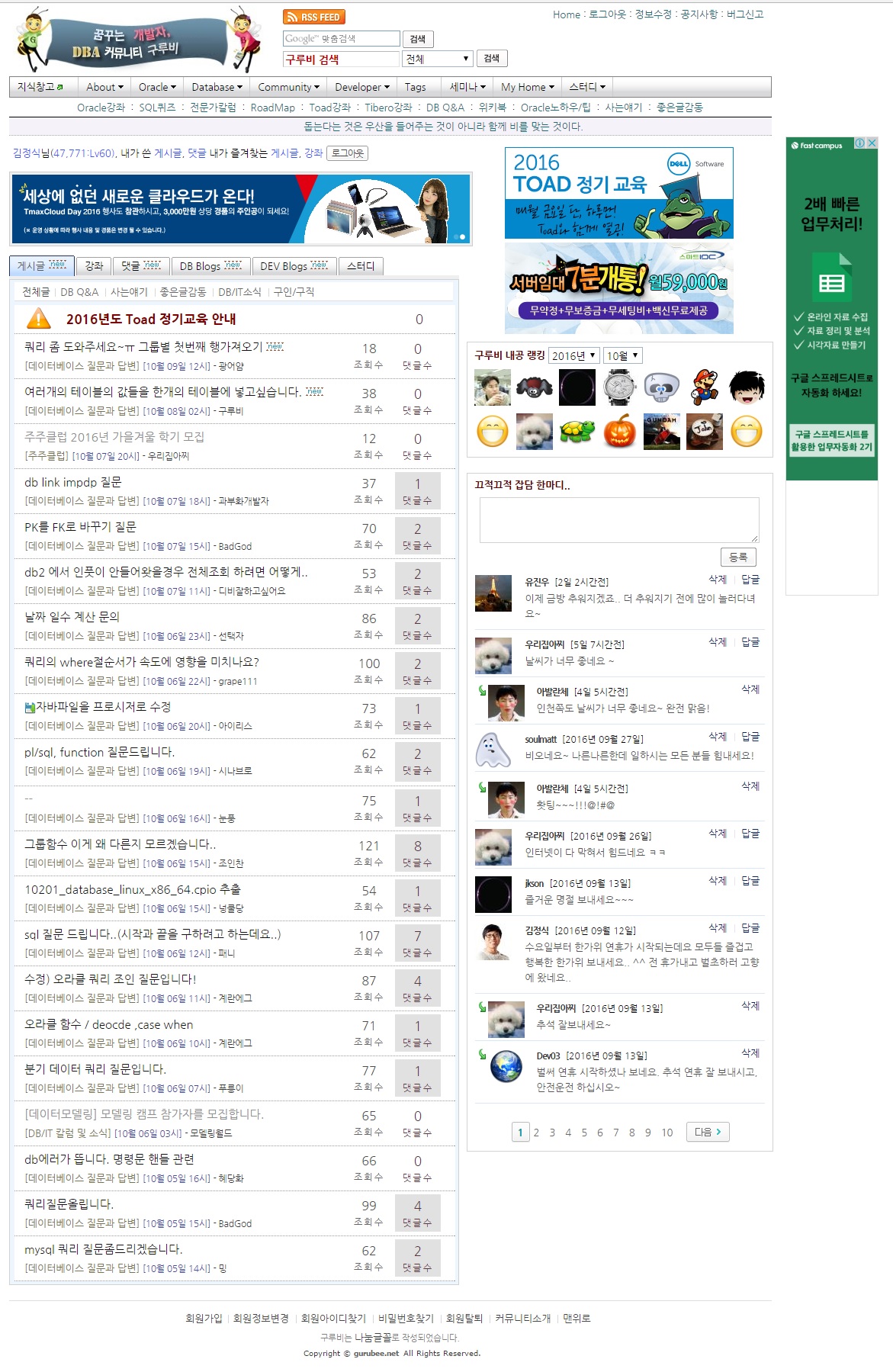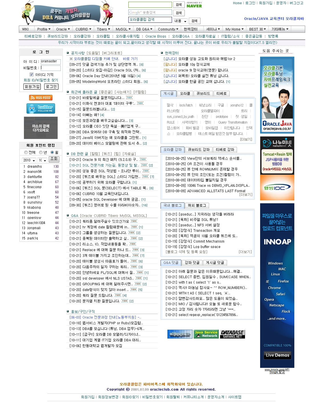 오라클클럽에 자주 방문해 주시고요, 글도 많이 올려주시고요..