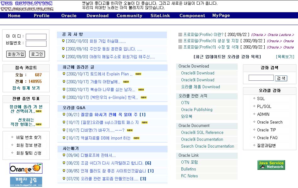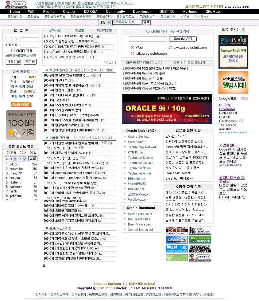 - - 2001년 07월 오라클 데이터베이스 정보공유 커뮤니티 오라클클럽 운영시작