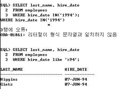 그냥 날짜가 07-JUN-94 라서 마지막 것을 비교 검색하기 때문에