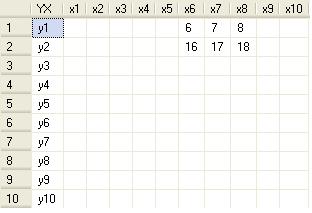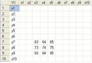 select 'Y7' as yx, '' as x1, '' as x2, '63' as x3, '64' as x4, '65' as x5, '' as x6, '' as x7, '' as x8, '' as x9, '' as x10
