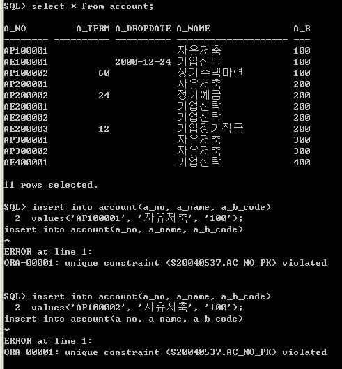간단한 SQL문 질문입니다. (in SQL Plus)