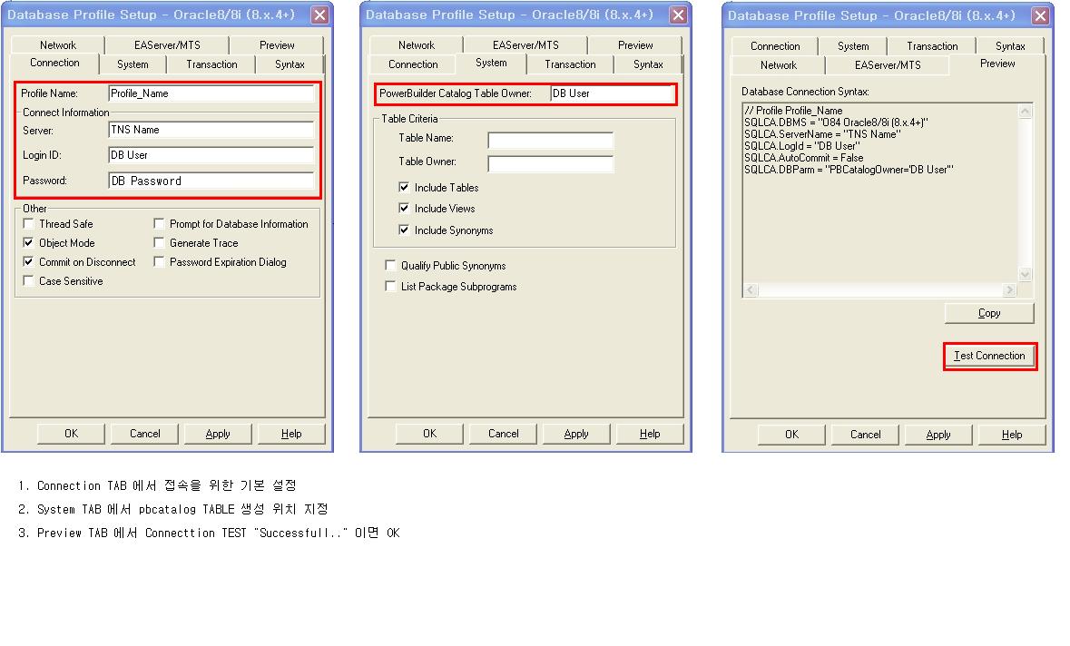 PB에서 DB 접속하느 방법 및 pbcatalog 파일 생성 쿼리