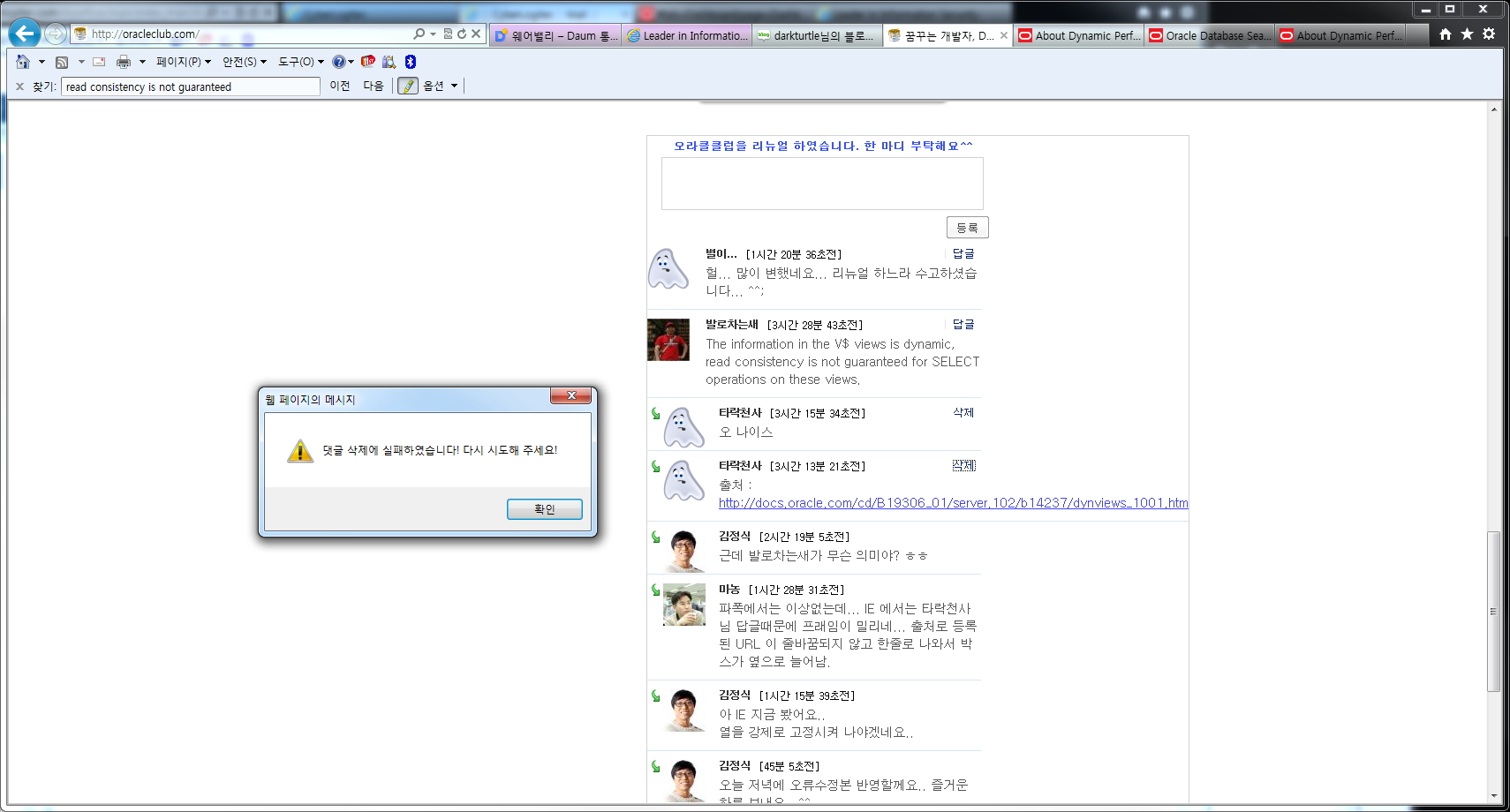 메인화면 댓글에서 발생한 오류죠?