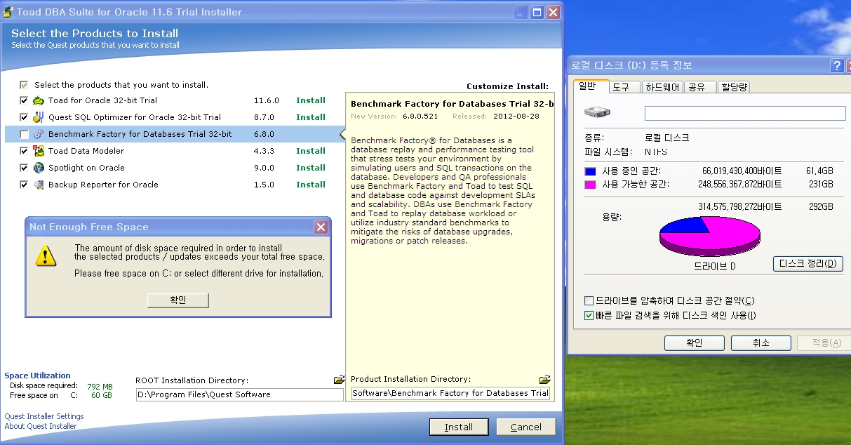 D 드라이브에 설치해도 C드라이브의 저장공간을 체크하나 보네.. 이론.
