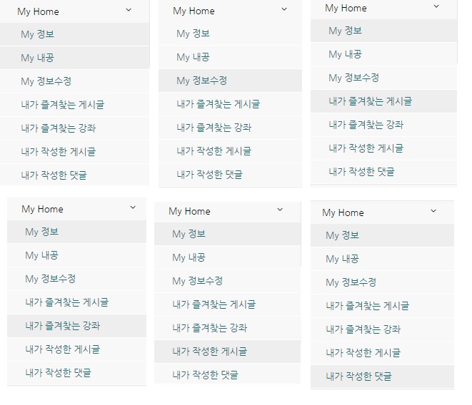 My Home에 있는 서브메뉴중에서 My 정보수정을 제외한 다른 메뉴를 선택시에는