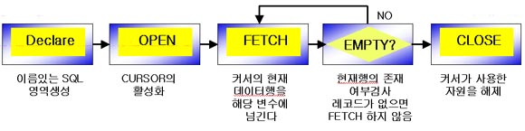 • - 커서안의 검색이 실행되며 아무런 데이터행을 추출하지 못해도 에러가 발생하지 않는다.
