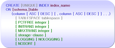 SQL> CREATE INDEX scott.emp_ename_idx ON scott.emp(ename) TABLESPACE idx;