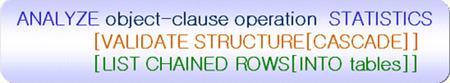 object-clause : TABLE, INDEX, CLUSTER중에서 해당하는 오브젝트를 기술하고 처리할 오브젝트 명을 기술 한다.