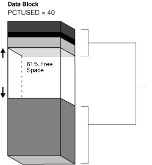 PCTUSED = 40 : 데이터 블록의 사용영역이 39%보다 적어지지 않으면 새로운 행을 INSERT할 수 없음을 의미 합니다.