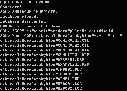 데이터베이스를 SHUTDOWN 하고, 복구 실패에 대비하기 위해 지금 현재의 데이터 베이스 파일을 전부 복사해 둔다