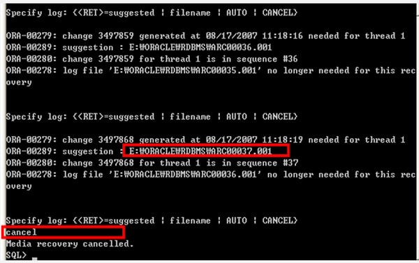 결국 이전 ARCHIVE까지만 수행하기 위해, CANCEL-BASED를 이용해 데이터베이스를 복구 한다