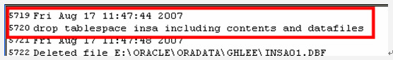 테이블 스페이스가 삭제된 시점을 확인하기 위해 ALERT 파일을 확인