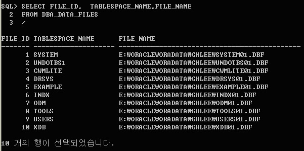 -- 파일 경로를 생략할 경우 윈도우의 경우는 %ORACLE_HOME%/database에,