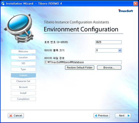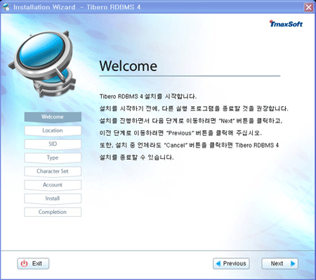 Window 계열에서 GUI 모드로 Tibero RDBMS를 설치하는 순서는 다음과 같다.