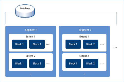 세그먼트를 처음 만들거나, 세그먼트의 저장 공간이 더 필요한 경우, Tibero RDBMS는 테이블스페이스에서 연속된 블록의 주소를 갖는 데이터 블록을 할당 받아 세그먼트에 추가한다.