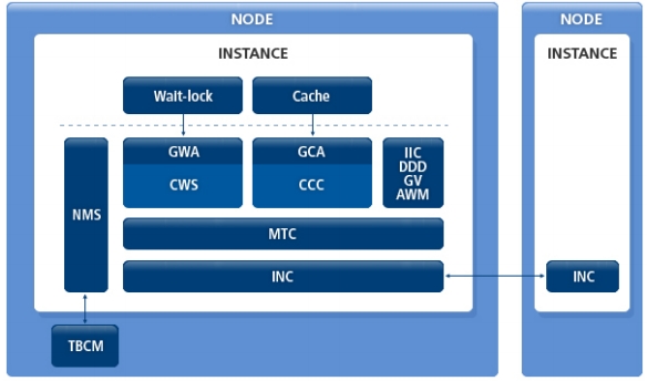 DLM이 내장되어 있다. CR Block Server, Current Block Server, Global Dirty Image, Global Write 서비스가 포함되어 있다.