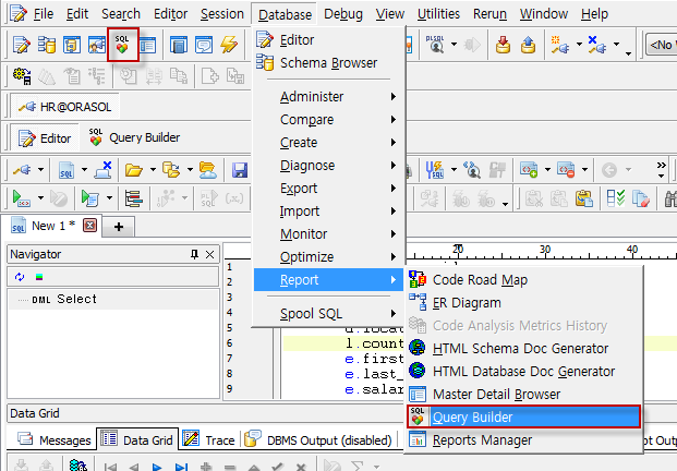 Toad 메인 메뉴 > Database > Report > Query Builder
