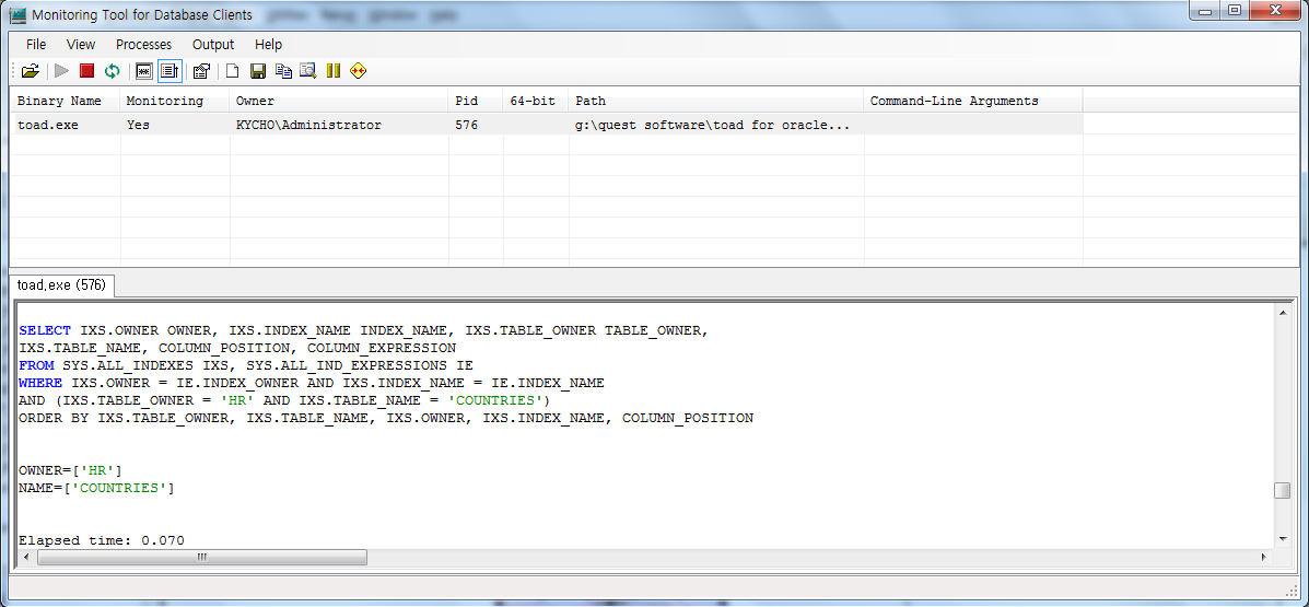 by 토드 Toad for Oracle SQL Tracker [2013.01.17]