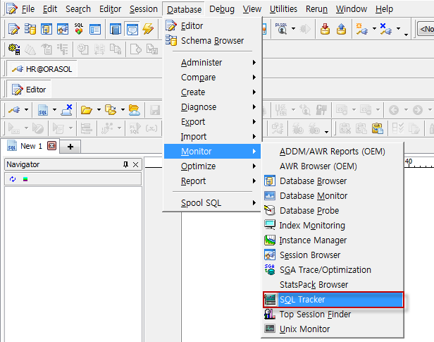 Toad 메인 메뉴 > Database > Monitor > SQL Tracker