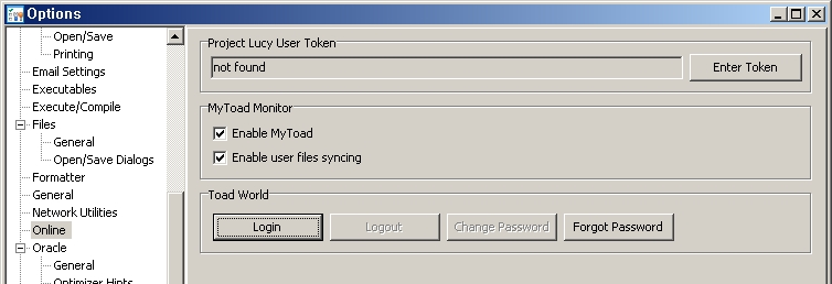 View > Toad Options > Online > Toad World > Login을 통해서 로그인 할 수 있습니다.