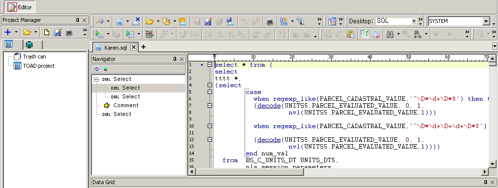 스크립트를 더블 클릭하거나 Open을 누르면 Toad의 Editor 창에 스크립트가 열립니다.