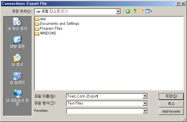 DB접속 정보를 다시 Import 하려면 Login 창의 Export 버튼을 클릭해서 파일로 저장합니다. “Save passwords”에 체크가 되어 있는 경우 해당 패스워드 정보는 암호화해서 파일에 저장합니다.