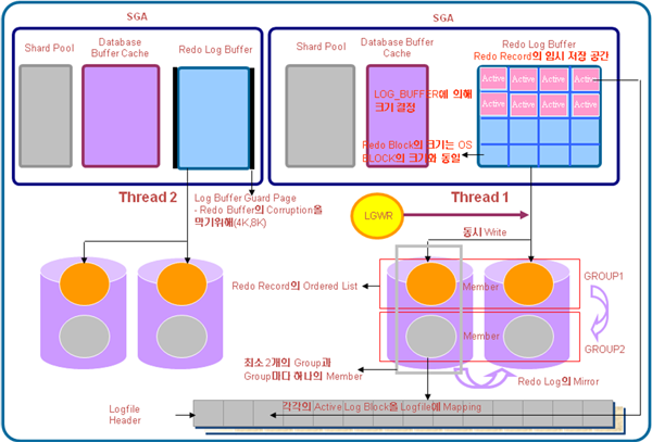 데이터베이스의 복구를 책임지는 Log는 Redo Log Buffer와 Redo Log File로 구성된다. [그림 1]은 Log 관리를 위한 Redo Log Buffer와 Redo Log File에 대한 내용이다.