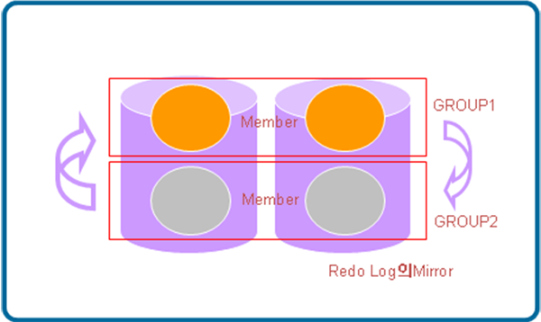 [그림 2]와 같이 GROUP 1에 로그를 기록한 후 모든 기록이 종료하게 되면 GROUP 2에 로그를 기록하게 된다. 또한 GROUP 2에 로그의 기록이 종료하게 되면 GROUP 1에 로그를 다시 기록하게 된다. 이와 같이 Redo Log File의 GROUP은 계속해서 재사용하게 된다.