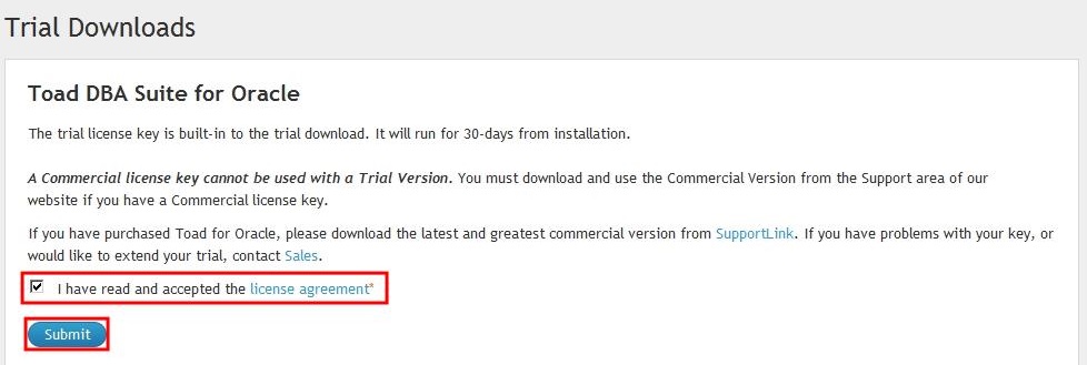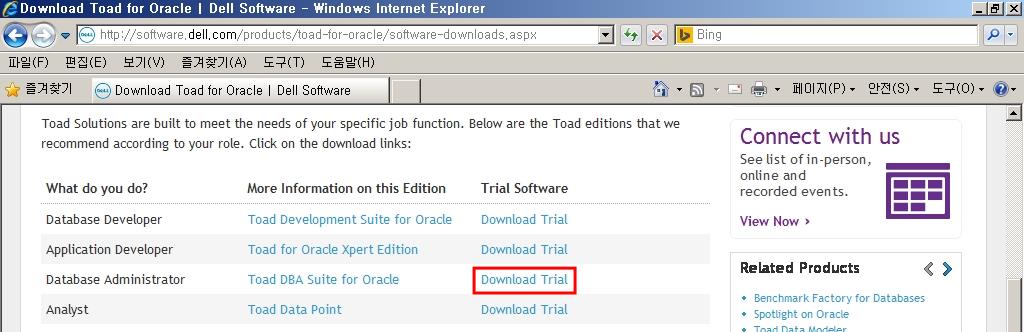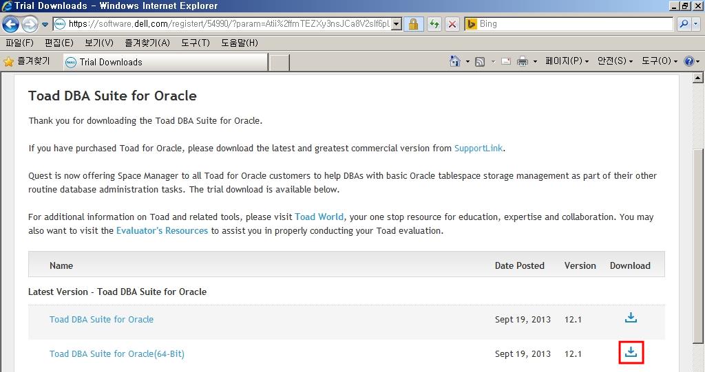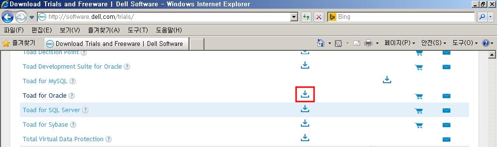 스크롤을 아래로 내려 Toad for Oracle제품의 Trial icon을