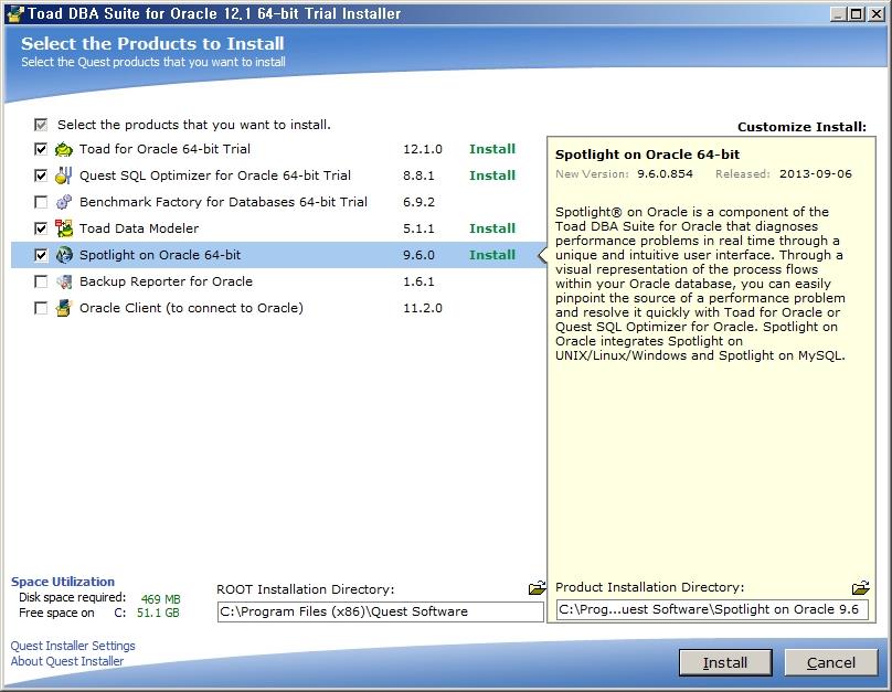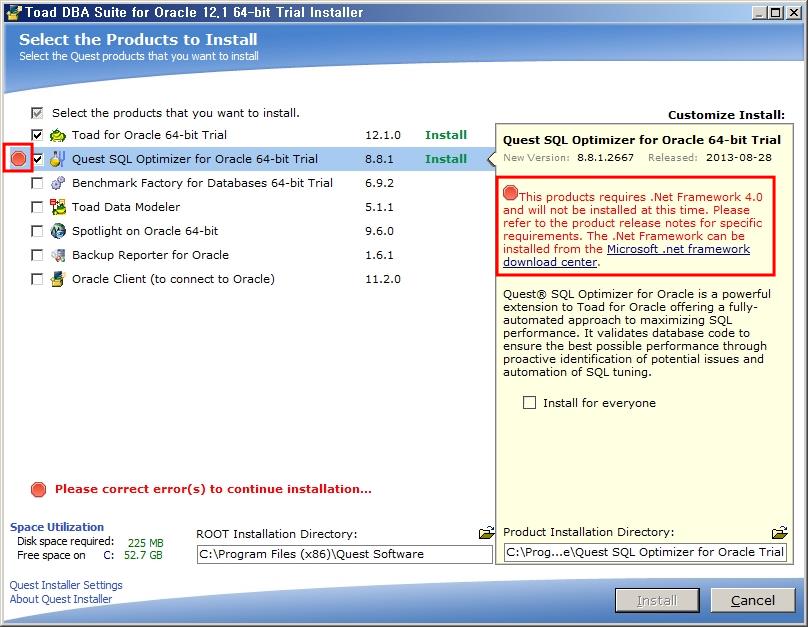 Toad 및 다른 프로그램(SQL Optimizer, Spotlight 등)을 설치할 때 사전에 필수적으로 설치되어야 하는 프로그램이 있어야 합니다. 만약 조건을 충족하지 않으면 아래와 같이 좌측에
