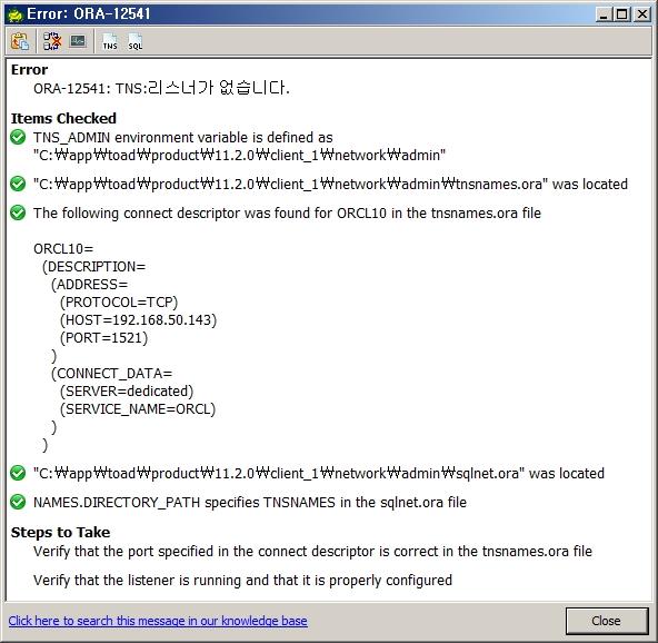 Tnsname.ora 파일이 없거나 내용이 잘 못되어 있을 때 설명이 상세한것 같아요.