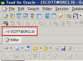 정상적으로 접속을 하면 다음과 같이 Editor 화면이 뜨게 됩니다. 접속 세션 정보는 유저@TNS명으로 표기됩니다.