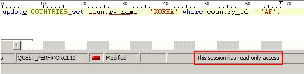 Toad는 데이터 보호나 보안상의 이유로 접속하는 유저에 대해 읽기 전용 모드로 접속하게 할 수 있습니다. 읽기 전용 상태로 접속하면 오라클 데이터베이스에 대해 오브젝트와 데이터 추가, 수정 및 삭제가 불가능하고 이와 관련 있는 메뉴 또한 사용할 수 없습니다.