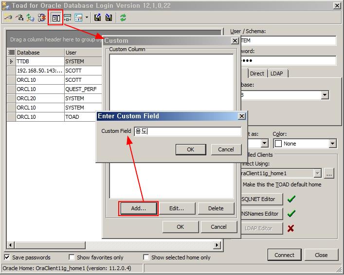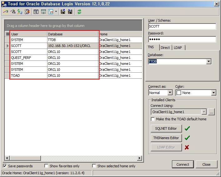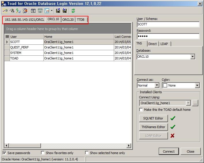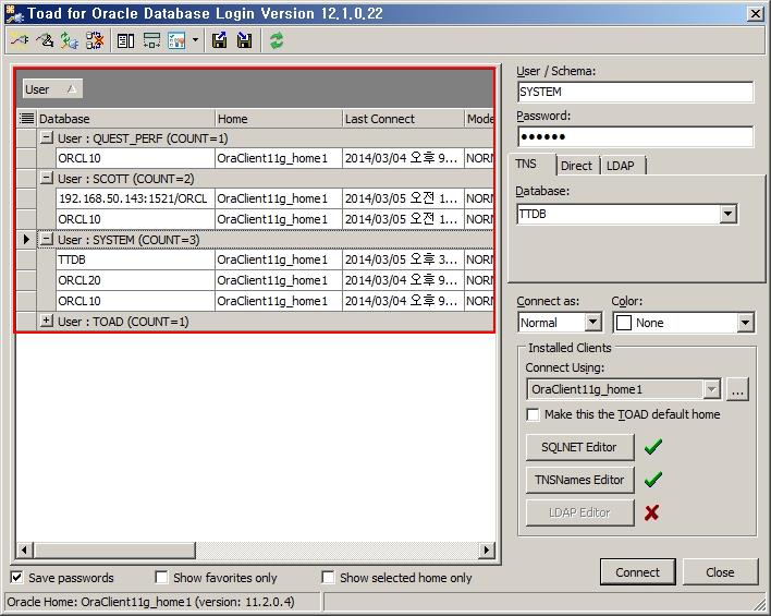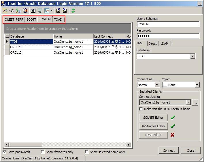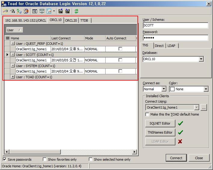 Toad는 접속한 로그인 정보가 많을 때 이를 효율적으로 관리할 수 있는 몇 가지 방법을 제시하고 있습니다.
