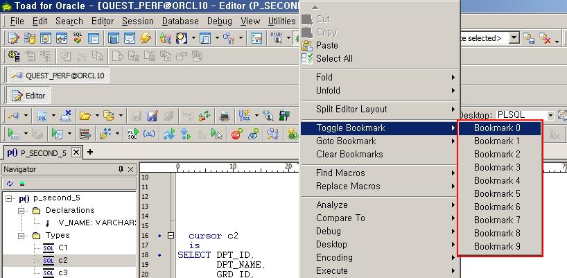 긴 SQL이나 Script에 Bookmark를 지정하면 미리 지정해 둔 코드의 지점(Line)으로 쉽게 이동할 수 있습니다.