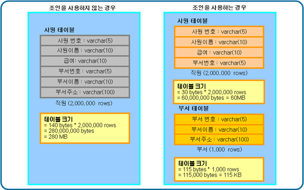 • - 조인을 사용하는 경우의 데이터 액세스 양 : 60MB + 115KB = 약 60MB