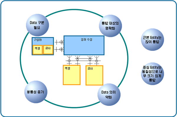 이와 같은 이유에서 Entity 통합을 수행하게 된다. 하지만 이런 장점의 이면에는 단점도 함께 숨어 있음을 명심하길 바란다. Entity 통합 시에는 다음의 사항에 유의해야 한다([그림 2] 참조).