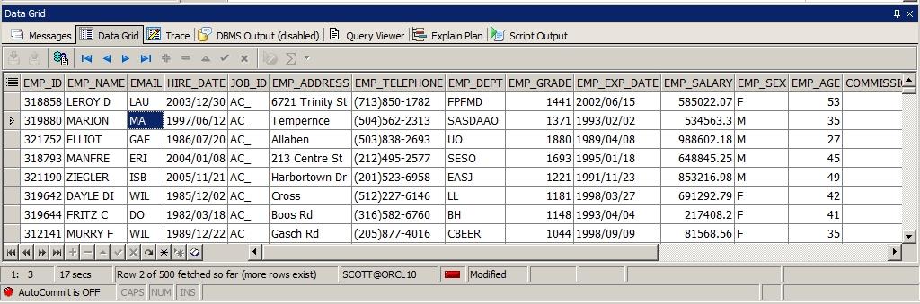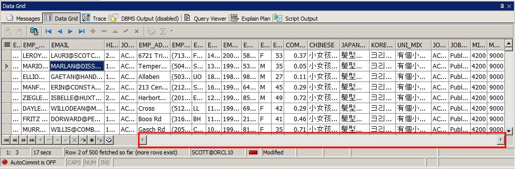 Toad는 조회한 쿼리의 결과가 많을 경우 효과적으로 보는 방법으로 몇 가지를 제시하고 있습니다. 그 중 하나는 Data Grid의 컬럼 길이를 자동으로 조절하는 기능입니다.