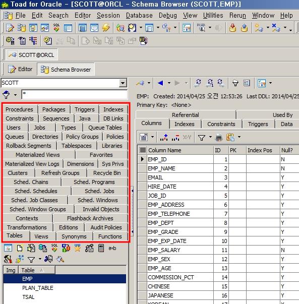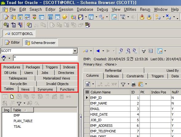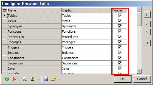 스키마 브라우저 왼쪽에 있는 오브젝트 패널의 보기 스타일을 변경할 수 있습니다.