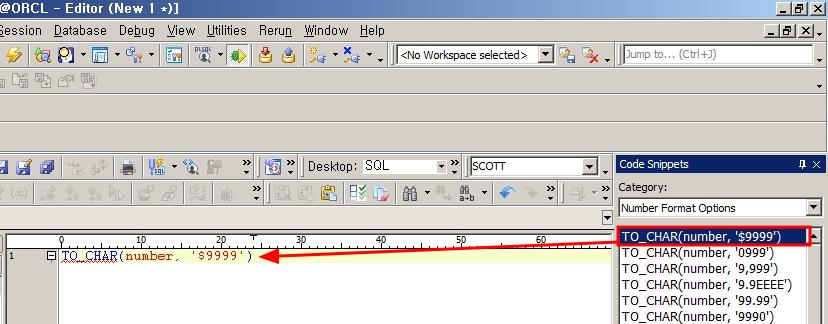 Toad는 Oracle의 내장 함수에 대한 정보를 제공하는 Code Snippet이라는 기능을 제공합니다.