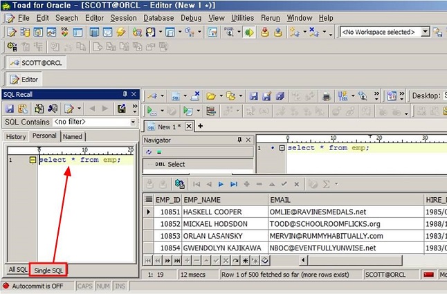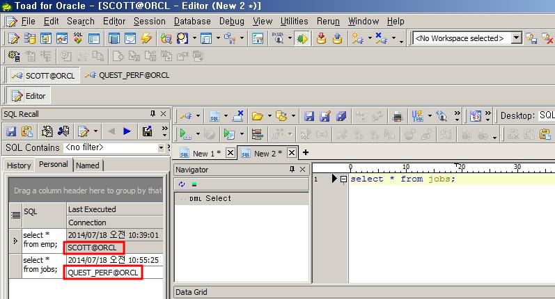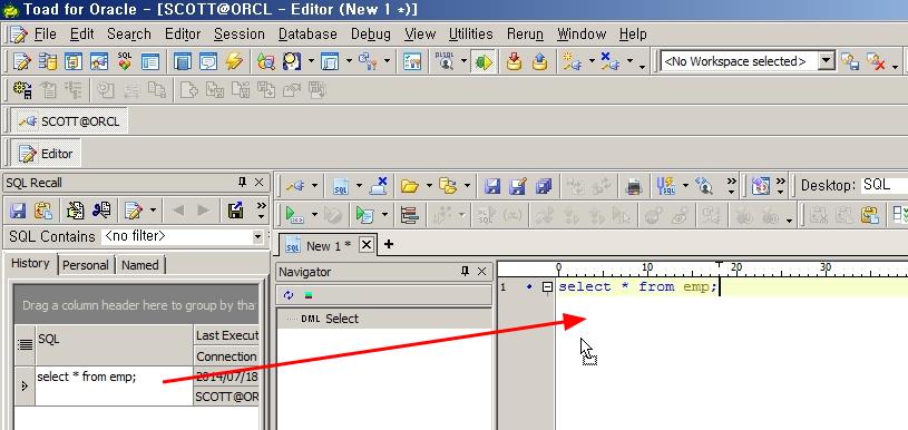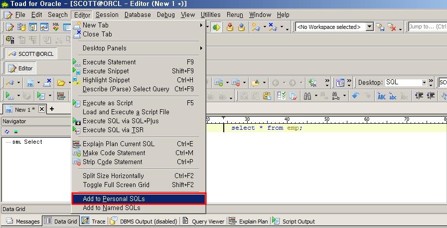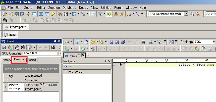 앞선 강좌에서 Toad의 SQL Recall 중 히스토리 기능을 살펴봤는데 일반적으로 히스토리는 토드에서 수행된 모든 쿼리에 대해서 저장을 하게 되므로 자주 사용되는 SQL이나 원하는 SQL을 찾을 때는 불편할 수 있습니다. Toad에서는 사용자가 원하는 SQL만 따로 저장할 수 있는 기능을 제공합니다.