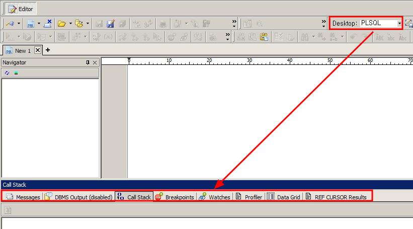 데스크톱을 SQL에서 PLSQL로 변경하면 PL/SQL을 작성할 때 일반적으로 사용자들이 많이 사용하는 탭이 나타나고 특히 PL/SQL을 디버깅할 때 도움이 됩니다.