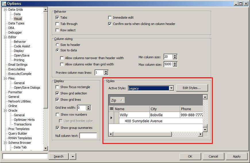 먼저 토드의 결과 창의 스타일(디자인)을 변경할 수 있습니다. Menu > View > Toad Options를 선택해서 Data Grids > Visual을 가면 Style을 바꿀 수 있습니다. 기본은 Legacy 입니다.