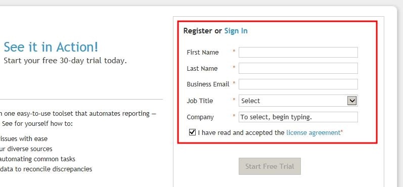 간단한 사용자 정보 입력 후 라이선스 관련 사항에 동의를 하면 Start Free Trial이라는 버튼이 활성화됩니다.