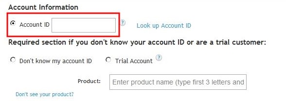 기본적인 정보를 입력하고 화면 중간쯤 Account Information에 구매 확인서 또는 라이선스 메일에 있는 Support Site ID 값을 Account ID에 입력합니다.