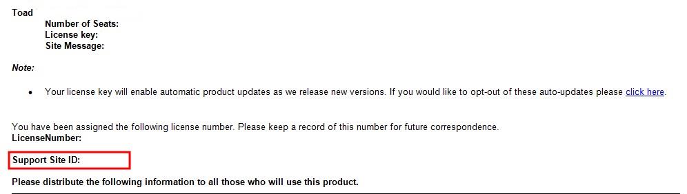 Toad Data Point를 구매하면 구매확인서 또는 라이선스 키 메일에 있는 Support Site ID (혹은 Account ID)를 이용해서 퀘스트소프트웨어 Support 웹사이트(https://support.quest.com)에 등록하고 웹에서 설치 파일을 다운로드 받을 수 있습니다.