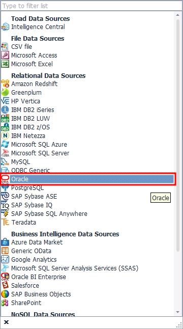 접속할 수 있는 모든 데이터 소스가 보이는데 이 중 하나를 선택합니다. 여기서는 Oracle을 선택하겠습니다.