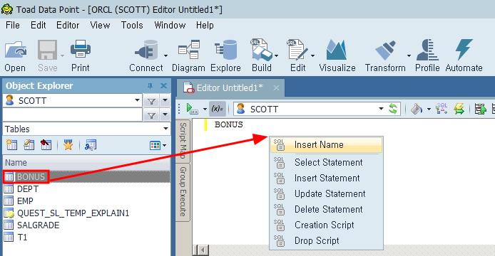 • Toad Data Point Object Explorer와 Editor 연계 – SQL자동 생성