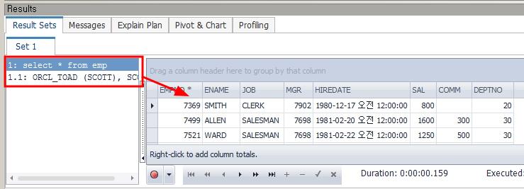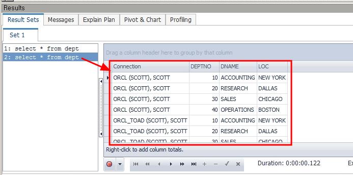 • 두 데이터베이스의(ORCL, ORCL_TOAD) 실행 결과 병합