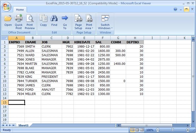 OK버튼을 누르면 엑셀 파일이 생성됩니다.